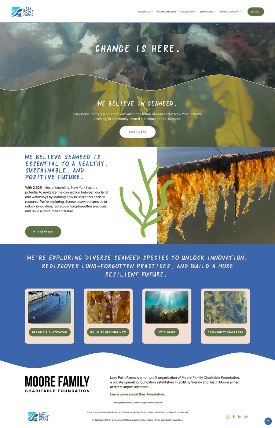 Lazy Point Farms is a nonprofit organization that invests in community-owned infrastructure and provides educational resources to seaweed cultivators, students, and the general public.